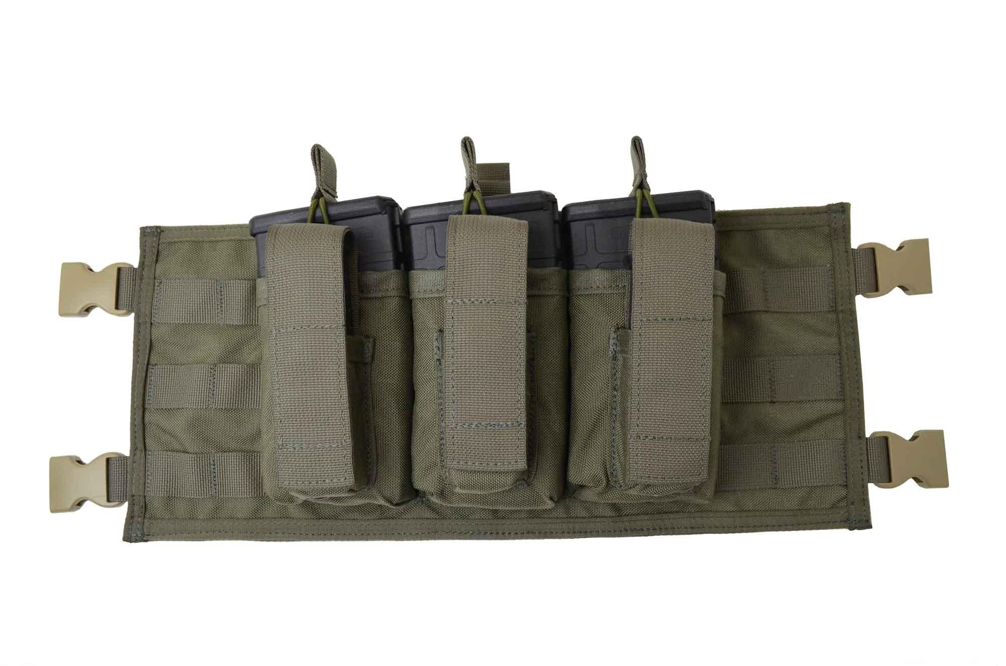As an added feature, it has a concealable map / document pocket on the inside of the panel with a velcro closure and a snap stud loop at the top, to prevent detachment of the velcro panel from the plate carrier, if crawling on the ground.