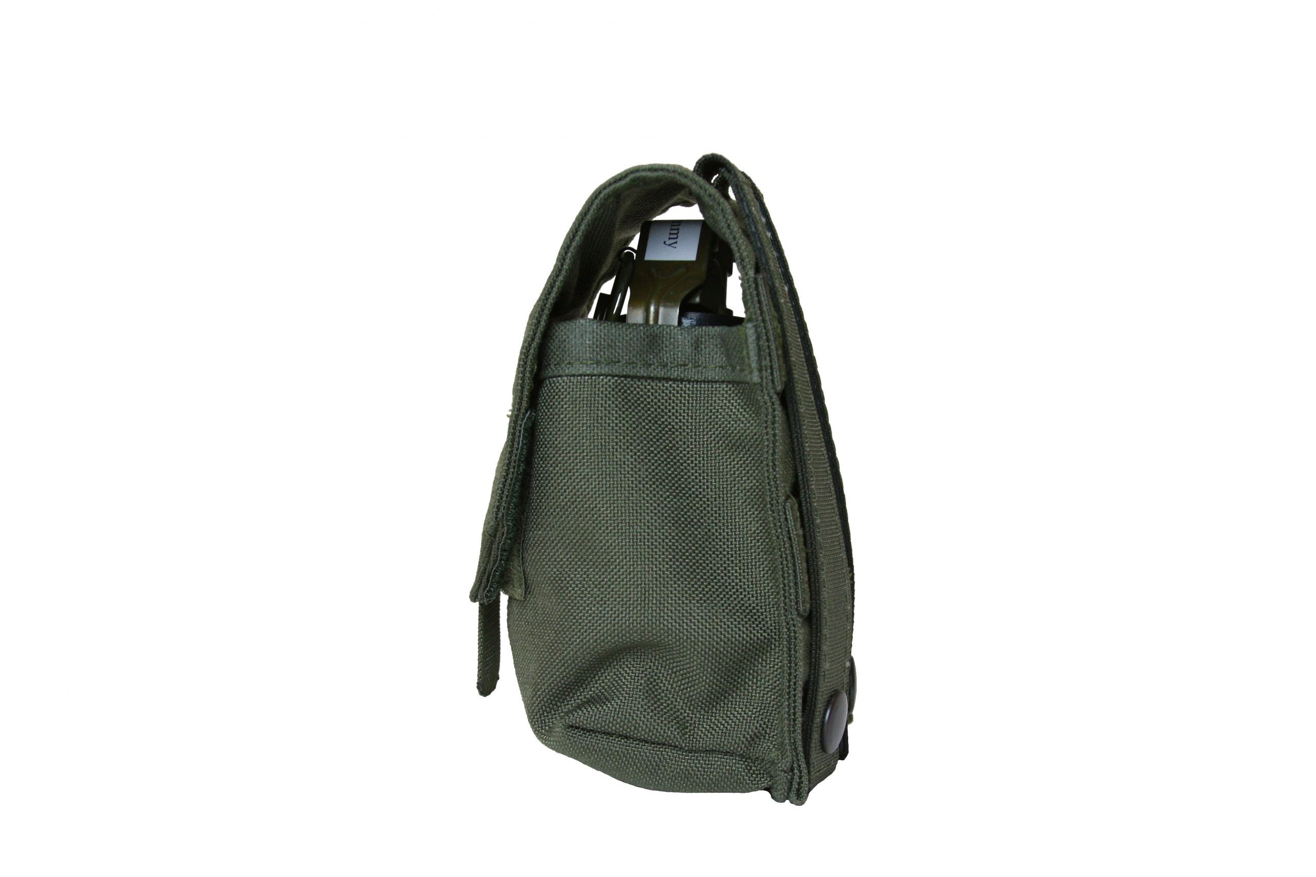 Made to fit a less lethal ALS stinger ball grenade. Equipped with MOLLE attachment on the reverse side of the pouch.